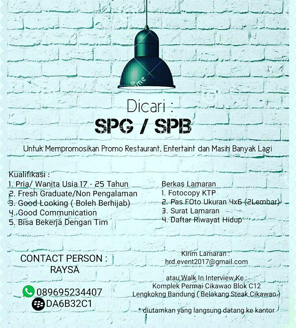 Tersedia lowongan kerja spg borma di bandung di jobindo.com, silahkan mendaftar segera kirim lamaran anda untuk lowongan pekerjaan spg borma di bandung. Loker bandung lowongan pekerjaan dibutuhkan spg frozen food dengan kualifikasi perem aikerja com from cdn.statically.io web developer, digital . Lowongan kerja spg reguler ( produck fresh) bandung agustus 2021, lowongan kerja bandung agustus 2021. Ada perusahaan yang sedang membuka kesempatan lowongan kerja spg, sales promotion representative, customer service, brand ambassador dan banyak lagi di . Temukan lowongan kerja spg di mall bip dan peluang kerja di bandung yang ditemukan oleh .
